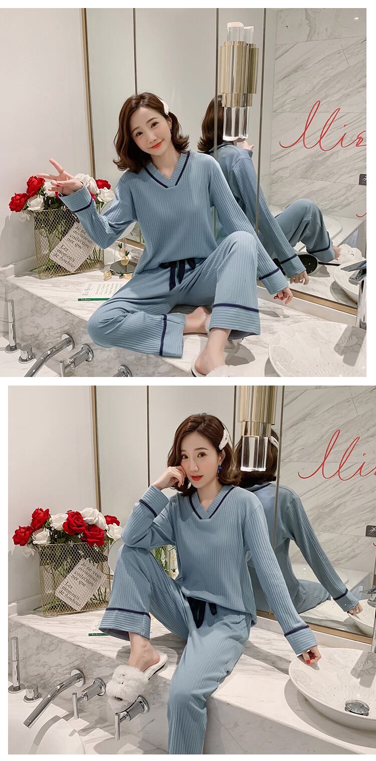 Ⅴネック長袖パジャマ ルームウェア パジャマ 寝巻き ナイトウェア ロング ロング丈 袖あり 長袖 Vネック 襟なし リボン ウエストリボン ウエストゴム 綿 上下セット 2点セット ツーピース かわいい 大人可愛い シンプル カジュアル 大人 大人可愛い 大人女子 こなれ感 ラフ ラブリー キュート ガーリー 主役級 存在感 無地 春 夏 秋 10代 20代 30代 レディース デート 女子会 お泊まり 休日 普段使い 韓国 韓国系 サイズ M L XL 2XL 色展開 青 ブルー 緑 6223