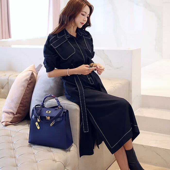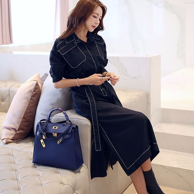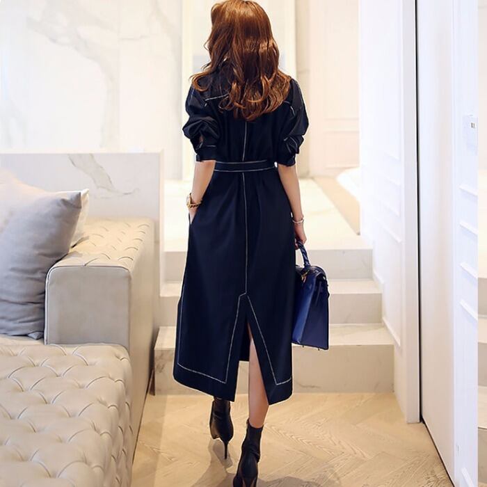 ステッチシャツワンピース ワンピース シャツワンピース ロング ロング丈 袖あり 長袖 Vネック 襟付き スリム 細身 Iライン ベルト ウエストマーク ハイウエスト かわいい 大人可愛い シンプル カジュアル 大人 おしゃれ お洒落 大人可愛い 大人女子 こなれ感 ボーイッシュ クール 主役級 存在感 無地 春 夏 秋 10代 20代 30代 レディース 学生 通学 デート お出かけ 女子会 休日 着回し 普段使い 韓国 韓国系 サイズ S M L XL 色展開 黒 ブ 6264