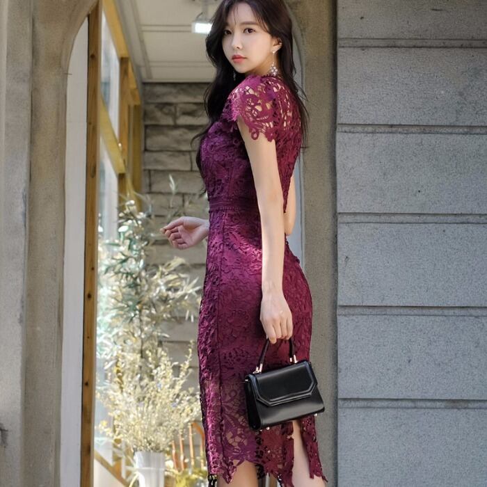 体にぴったりタイトなフォルムで、美しいシルエットのレースワンピース♪