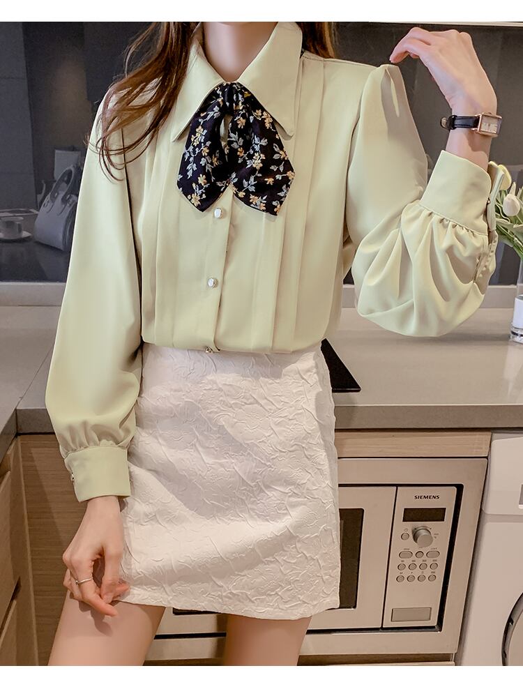 花柄ボウタイブラウス トップス ブラウス 袖あり 長袖 パフスリーブ 襟付き プリーツ 前開き ポリエステル かわいい 大人可愛い きれいめ シンプル 大人 上品 おしゃれ お洒落 大人可愛い 大人女子 こなれ感 ラブリー キュート ガーリー 無地 花柄 春 夏 秋 10代 20代 30代 レディース デート お出かけ 女子会 お泊まり 休日 着回し 普段使い 重ね着 韓国 韓国系 サイズ S M L XL 色展開 白 ホワイト 青 ブルー 黄色 カ 6284