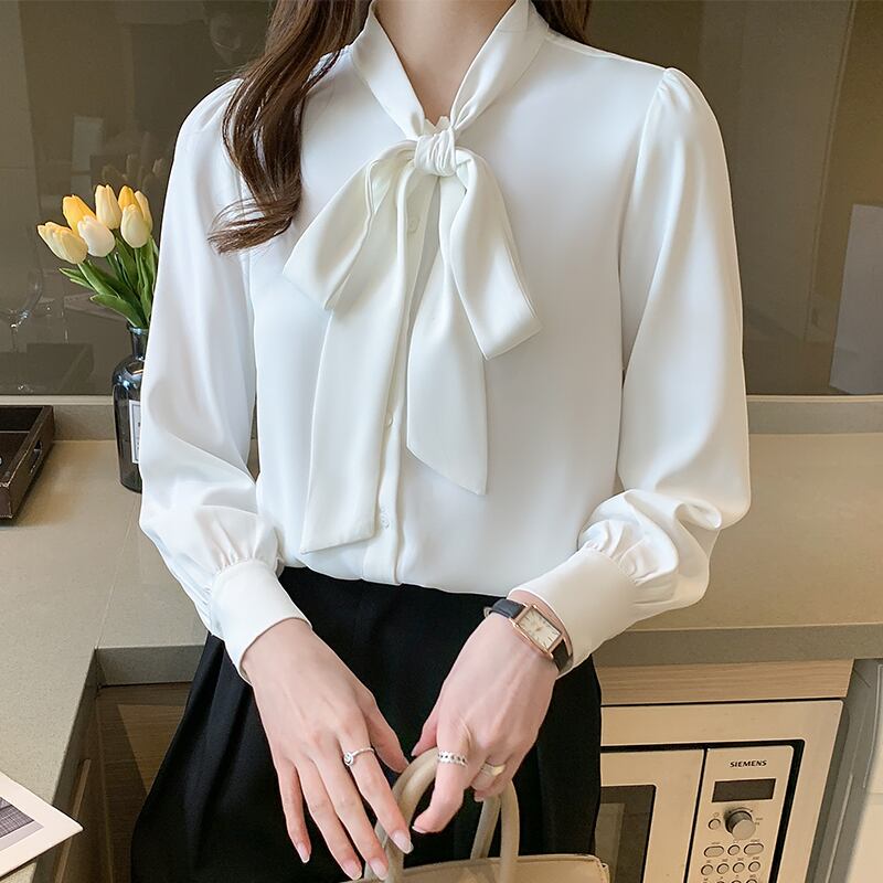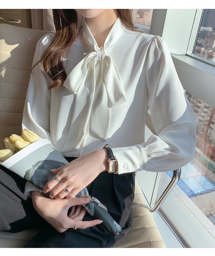 長袖ボウタイブラウス トップス ブラウス 袖あり 長袖 シフォン リボン かわいい 大人可愛い きれいめ シンプル 大人 上品 おしゃれ お洒落 大人可愛い 大人女子 こなれ感 ラブリー キュート ガーリー 無地 春 夏 秋 10代 20代 30代 レディース OL 通勤 学生 通学 デート お出かけ 女子会 休日 着回し 普段使い 重ね着 サイズ S M L XL 2XL 色展開 6285