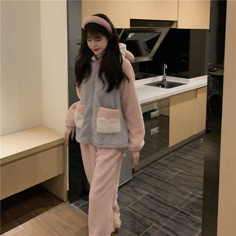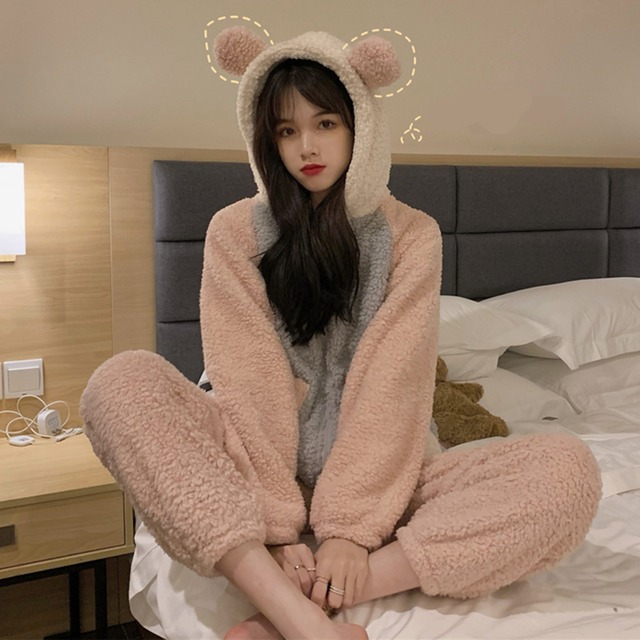ルームウェア クマ パジャマ 上下セット 着ぐるみ 2点セット ツーピース フード付き くま耳 くま 熊 ふわふわ アニマル モチーフ もこもこ モコモコ ボア トップス 長袖 袖あり 前開き ジッパー ファスナー フリース ポケット ボトムス ロング パンツ ズボン 裾絞り ウエストゴム 伸縮性 あったか 暖かい 厚手 厚い キュート ラブリー かわいい 可愛い お泊り デート 旅行 休日 部屋着 寝巻き ナイトウェア コスプレ 女の子 レディース 10代 20代 秋 冬 ワン 6329