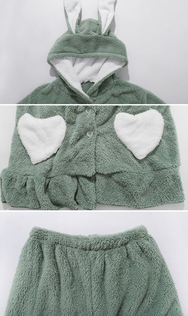 うさ耳フード付き上下セットのふわもこっとしたルームウェア?