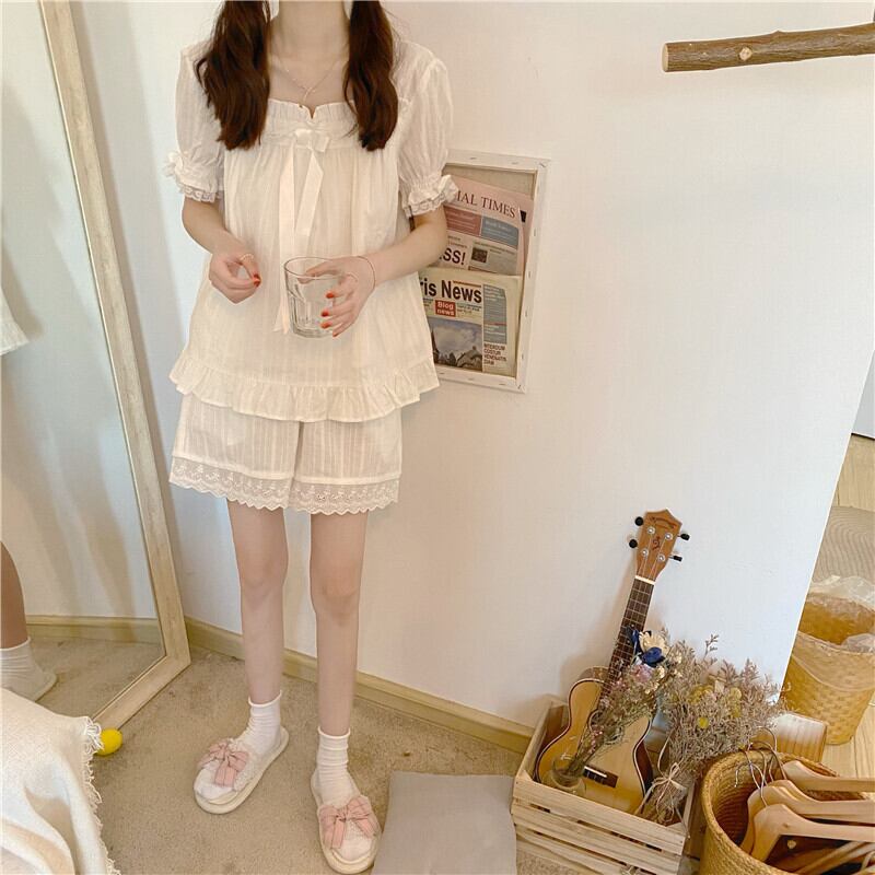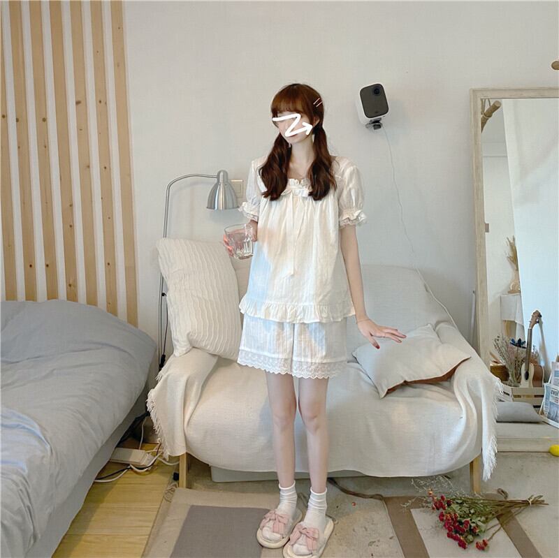 フリルレースルームウェア ルームウェア パジャマ 寝巻き ナイトウェア ネグリジェ ショート ショート丈 ロング ロング丈 袖あり 半袖 パフスリーブ スクエアネック レース フリル 透け感 上下セット 2点セット ツーピース かわいい 大人可愛い シンプル カジュアル おしゃれ お洒落 大人可愛い 大人女子 ラブリー キュート ガーリー 無地 春 夏 10代 20代 30代 レディース 女子会 お泊まり 休日 普段使い 韓国 韓国系 ゆったり ゆる 色展開 6303