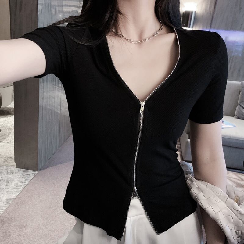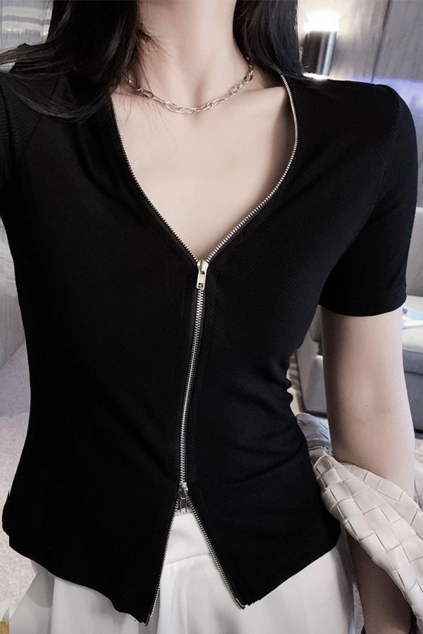 フロントジップTシャツ トップス Tシャツ 袖あり 半袖 Vネック スリム 細身 ファスナー 前開き 綿 ポリエステル かわいい 大人可愛い シンプル カジュアル 大人 おしゃれ お洒落 かっこいい 大人可愛い 大人女子 こなれ感 ラフ メンズライク ボーイッシュ クール 無地 春 夏 10代 20代 30代 レディース 学生 通学 デート お出かけ 女子会 休日 普段使い 韓国 韓国系 モテ サイズ L XL 2XL 3XL 4XL 色展開 6309