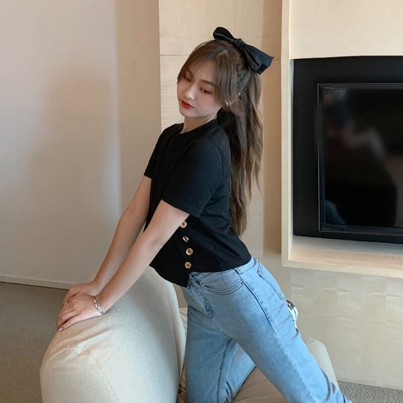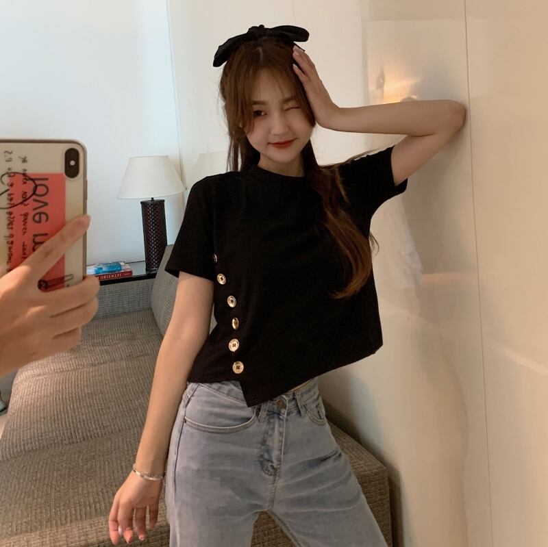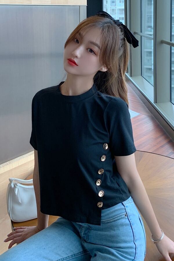 フロントボタンTシャツ トップス Tシャツ ショート ショート丈 袖あり 半袖 ラウンドネック かわいい 大人可愛い シンプル カジュアル 大人 おしゃれ お洒落 かっこいい 大人可愛い 大人女子 こなれ感 ラフ ボーイッシュ 個性的 クール 主役級 存在感 無地 春 夏 10代 20代 30代 レディース 学生 通学 デート お出かけ 女子会 休日 着回し 普段使い 重ね着 韓国 韓国系 オルチャン ファッション サイズ L XL 2XL 3XL 4XL 色展開 6312