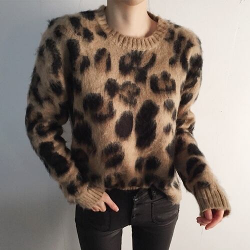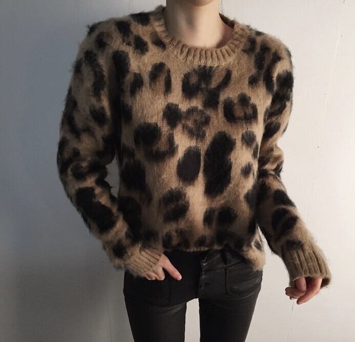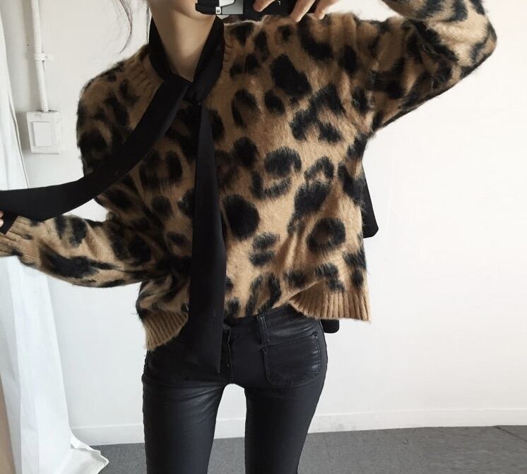 ヒョウ柄ニット トップス セーター 袖あり 長袖 ラウンドネック 綿 かわいい 大人可愛い シンプル カジュアル 大人 おしゃれ お洒落 大人可愛い 大人女子 こなれ感 個性的 クール 主役級 存在感 柄 ヒョウ柄 秋 冬 10代 20代 30代 レディース 学生 通学 デート お出かけ 女子会 休日 着回し 普段使い 重 6073