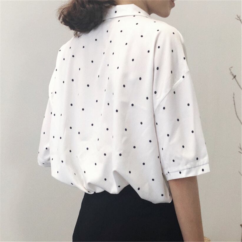 ドット柄開襟シャツ トップス シャツ 袖あり 半袖 Vネック 襟付き 前開き かわいい 大人可愛い シンプル カジュアル 大人 おしゃれ お洒落 大人可愛い 大人女子 ラブリー キュート ガーリー 存在感 柄 ドット柄 水玉 春 夏 10代 20代 30代 レディース 学生 通学 デート お出かけ 公園デビュー 女子会 休日 着回し 普段使い 重ね着 サイズ S M L XL 2XL 色展開 白 ホワイト 黒 ブラッ 6126
