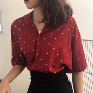 ドット柄デザインの半袖開襟シャツブラウス♪