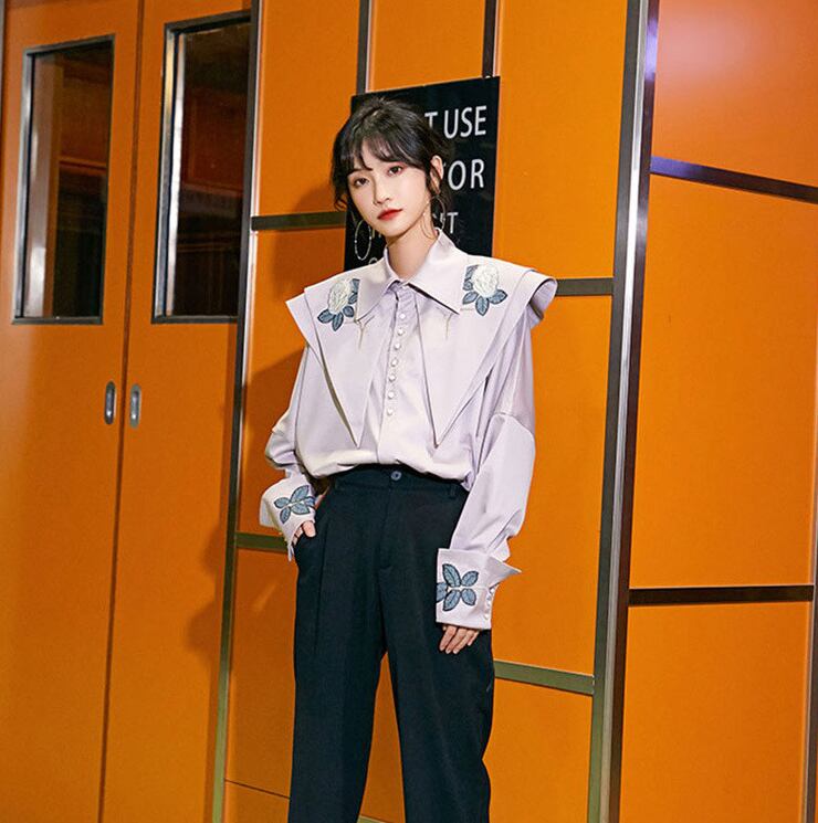 バラ刺?ブラウス トップス ブラウス 袖あり 長袖 襟付き 刺繍 前開き かわいい 大人可愛い シンプル カジュアル おしゃれ お洒落 レトロ 大人可愛い 大人女子 こなれ感 ラブリー キュート ガーリー 個性的 無地 春 秋 10代 20代 30代 レディース 学生 通学 デート お出かけ 女子会 休日 着回し 普段使い 重ね着 サイズ S M L 6137