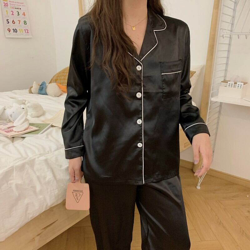 レディースパジャマ ナイトウェア ルームウェア 部屋着 寝間着 無地 長袖 前開き 開襟シャツ 胸ポケット付き パイピング 二点セット ツーピース 上下セット カラバリ 春 秋 冬 おうちコーデ おうち時間 旅行 海外旅行 お泊まり リゾート バカンス お揃い 色違い カラー ホワイト ブラック ピンク ロイヤルブルー サイズ展開 M L 4302
