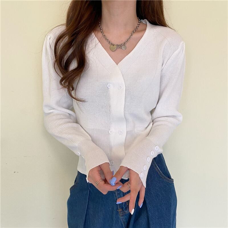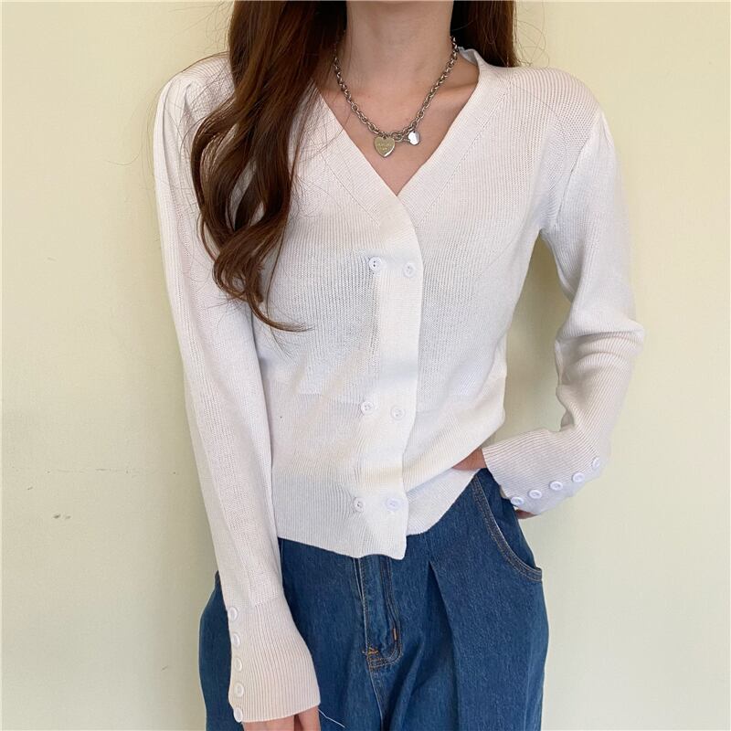 ダブルボタンカーディガン トップス カーディガン ショート ショート丈 袖あり 長袖 Vネック 前開き かわいい 大人可愛い きれいめ シンプル カジュアル 大人 おしゃれ お洒落 大人可愛い 大人女子 こなれ感 ラブリー キュート ガーリー 無地 春 夏 秋 10代 20代 30代 レディース OL 通勤 学生 通学 デート お出かけ 公園デビュー 休日 着回し 普段使い 重ね着 サイズ S M L 色展開 白 ホワイト 黒 ブラック 青 ブ 6470