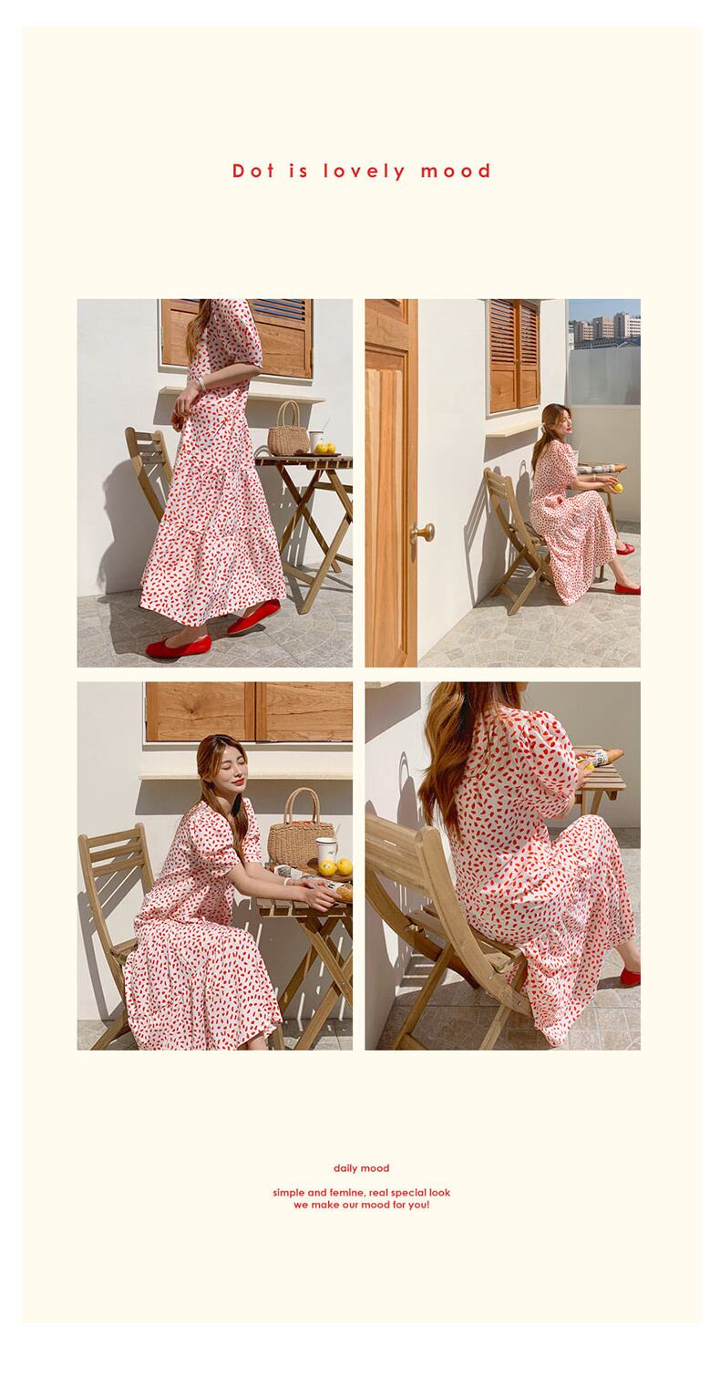 パフスリーブロングワンピース ワンピース ティアードワンピース ロング ロング丈 マキシ マキシ丈 袖あり 半袖 パフスリーブ ラウンドネック フレア Aライン 綿 ポリエステル かわいい 大人可愛い シンプル カジュアル 大人 おしゃれ お洒落 大人可愛い 大人女子 こなれ感 ラブリー キュート ガーリー 主役級 存在感 柄 ドット柄 水玉 春 夏 10代 20代 30代 レディース 学生 通学 デート お出かけ 公園デビュー 女子会 休日 普段使い 重ね着 韓国 韓国系 サイズ S 6498