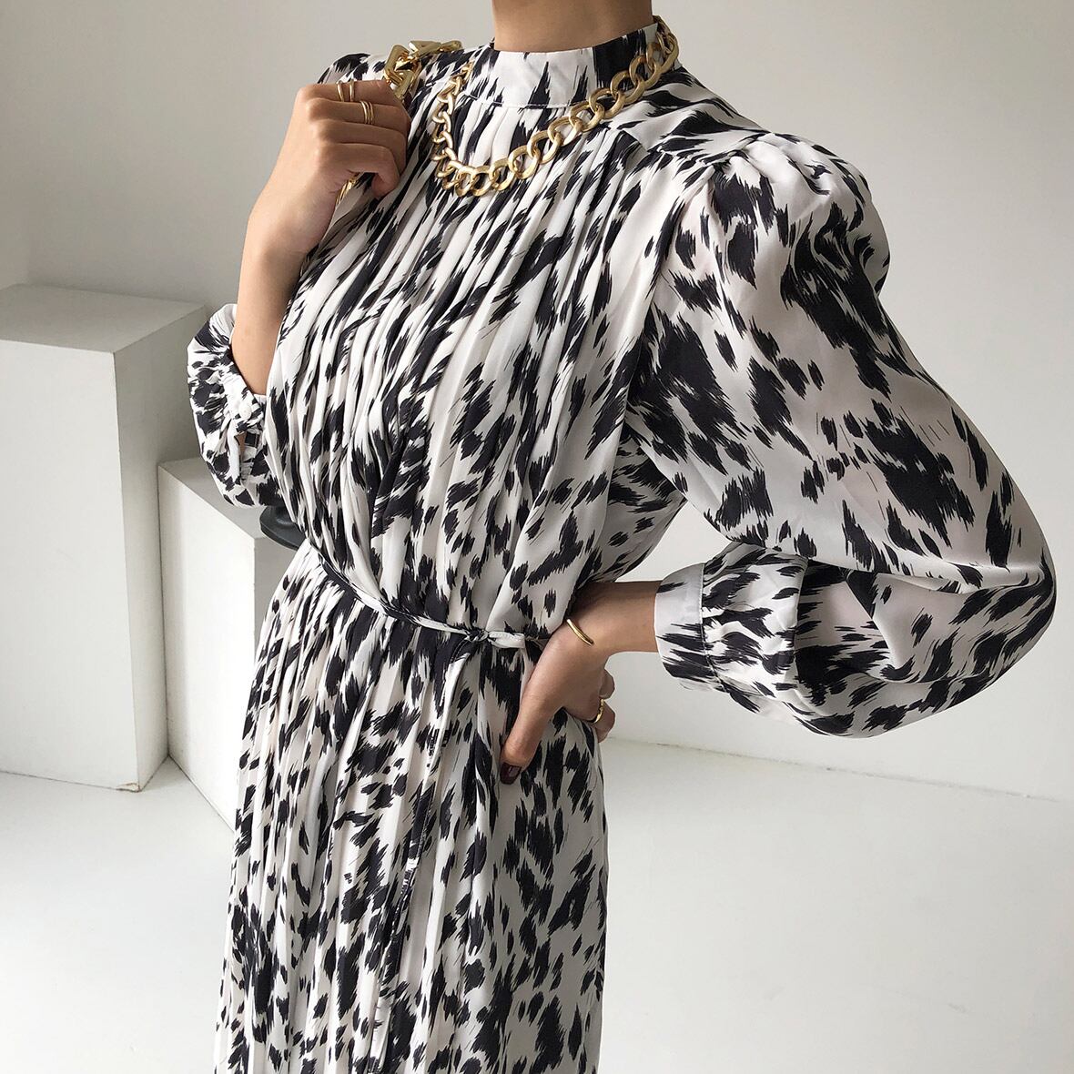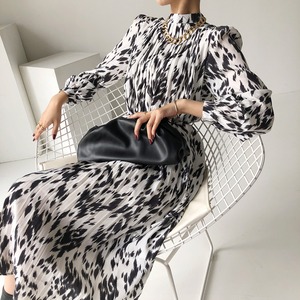 ワンピース 2色展開 膝下 ミモレ ミモレ丈 袖あり 長袖 ハイネック ボトルネック 切り替えデザイン プリーツ ウエストマーク ウエストリボン かわいい 大人可愛い きれいめ 大人 上品 おしゃれ お洒落 こなれ感 ヒョウ柄 レオパード アニマル柄 春 秋 冬 20代 30代 レディース ママ デート お出かけ 休日 ホテル ガーデン レストラン ディナー 韓国 オルチャン 美脚 脚長 ワンサイズ ブ 5923
