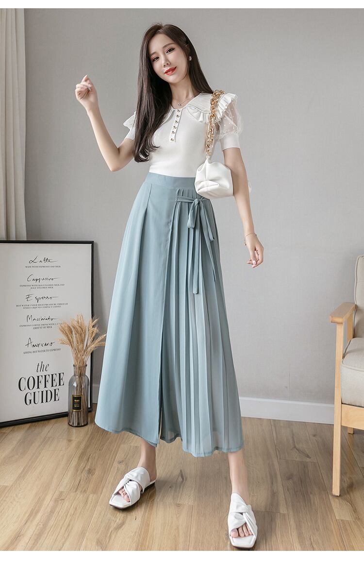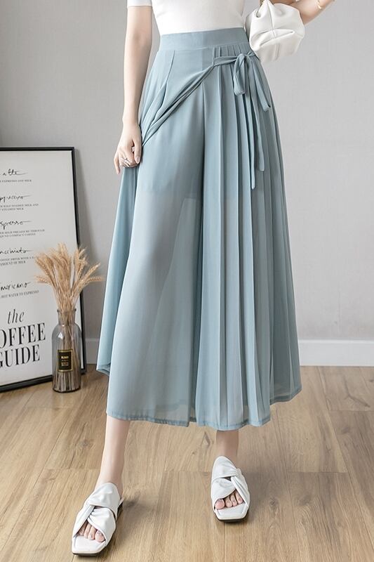 ラップスタイルがオシャレなシフォンワイドパンツ。