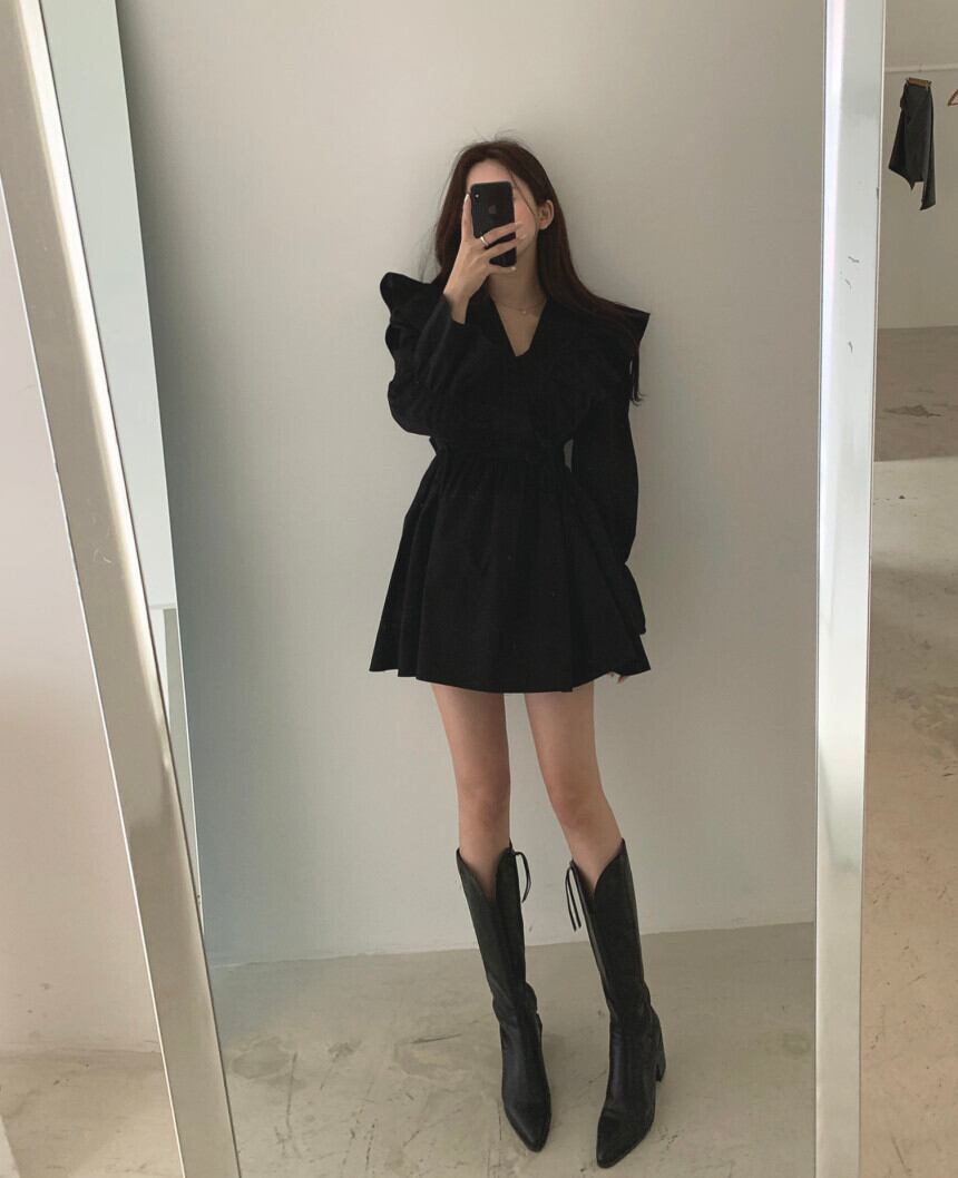 ワンピース 3色展開 フレアワンピース ミニワンピース ショート ショート丈 膝上 袖あり 長袖 Vネック カシュクール 切り替えデザイン フリル ウエストマーク ウエストリボン ボタン かわいい 大人可愛い きれいめ シンプル 大人 上品 おしゃれ お洒落 こなれ感 無地 春 秋 冬 20代 30代 レディース ママ デート お出かけ 休日 リゾート ホテル ガーデン レストラン ディナー 韓国 オルチャン 美脚 脚長 S M ホワイト ブラ 5929