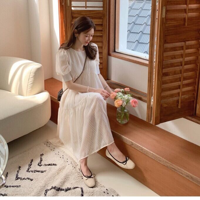 パフスリーブティアードワンピース ワンピース ティアードワンピース ミモレ ミモレ丈 ミディアム丈 袖あり 半袖 パフスリーブ ラウンドネック フレア ハイウエスト 透け感 かわいい 大人可愛い シンプル 大人 上品 おしゃれ お洒落 大人可愛い 大人女子 こなれ感 ラブリー キュート ガーリー 主役級 柄 春 夏 10代 20代 30代 レディース 学生 通学 デート お出かけ 公園デビュー 女子会 休日 着回し 普段使い 韓国 韓国系 サイズ S M L XL 色展開 白 ホワイト 6536