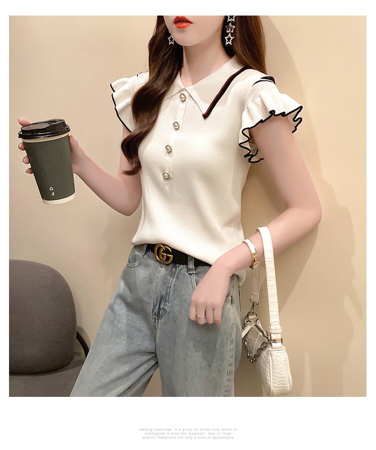 フリル袖ニット トップス セーター 袖あり 半袖 Vネック 襟付き ポリエステル かわいい 大人可愛い シンプル カジュアル 大人 上品 おしゃれ お洒落 大人可愛い 大人女子 こなれ感 ラブリー キュート ガーリー 個性的 主役級 無地 春 夏 10代 20代 30代 レディース 学生 通学 デート お出かけ 公園デビュー 女子会 休日 着回し 普段使い 韓国 韓国系 色展開 白 ホワイト 黒 ブラック 6537