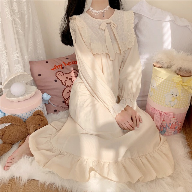 #長袖 #かわいい #シンプル #おしゃれ #レースパジャマワンピース