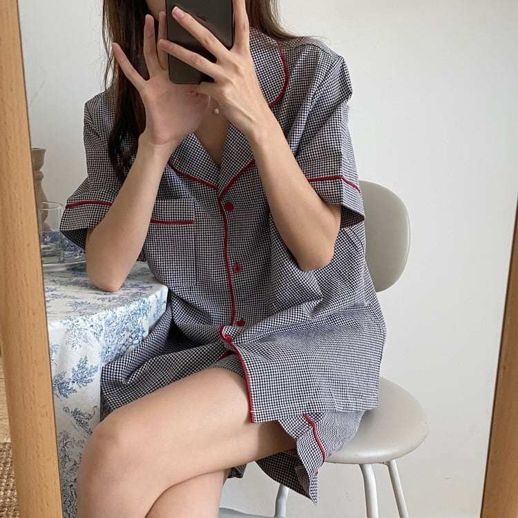 ギンガムチェックが涼しげなレディースパジャマです。