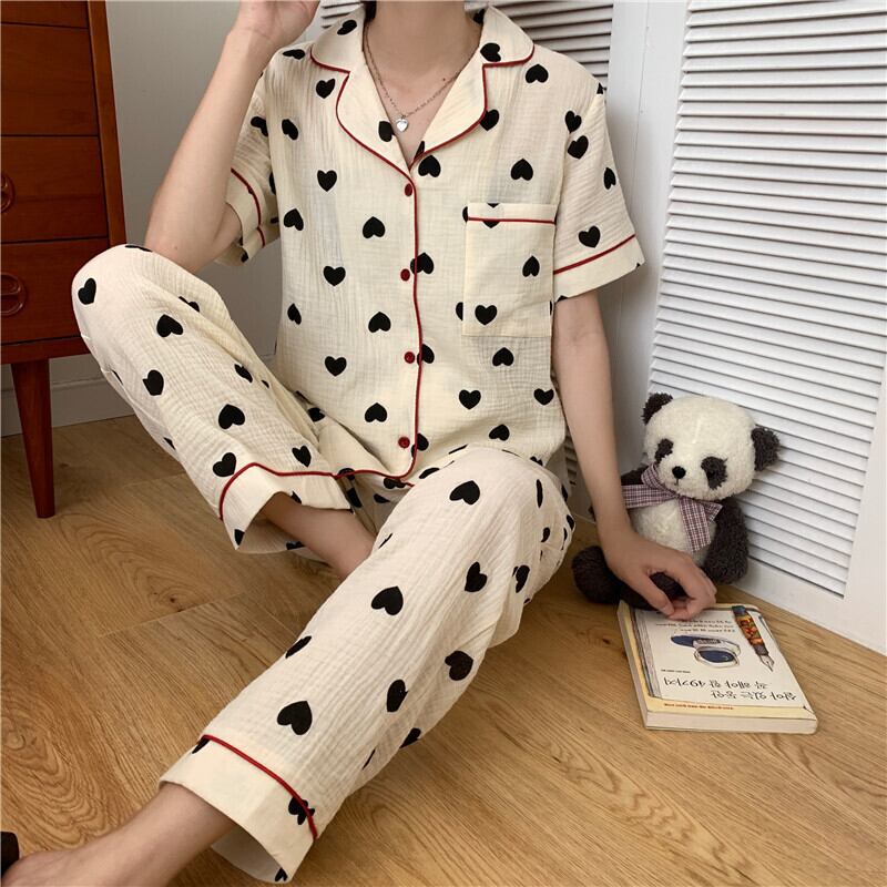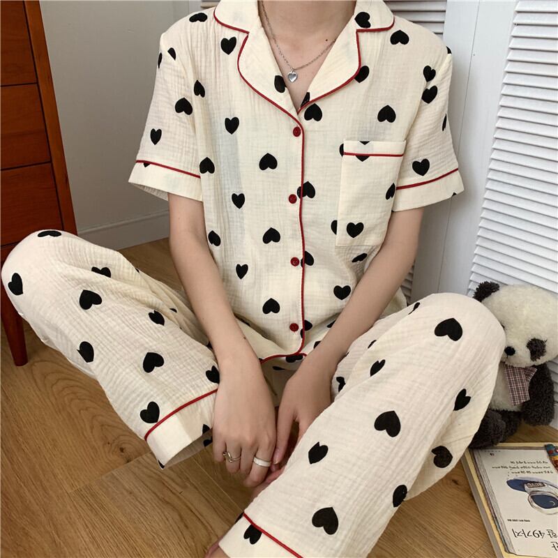 ハート柄がかわいらしいレディースパジャマです。