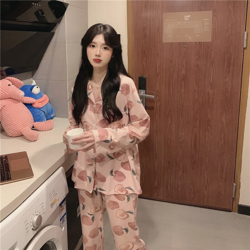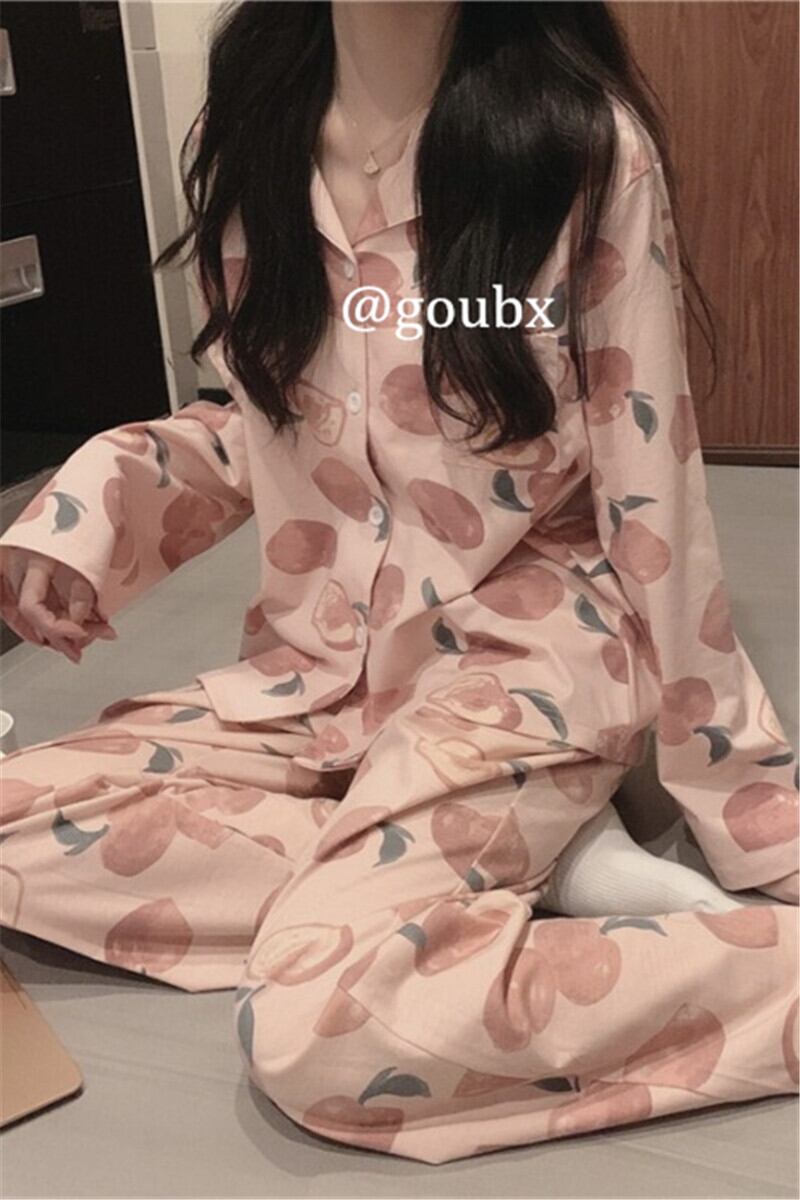 リンゴ柄長袖パジャマ ルームウェア パジャマ 部屋着 寝巻き ナイトウェア ロング ロング丈 袖あり 長袖 Vネック 襟付き 前開き ウエストゴム 上下セット 2点セット ツーピース かわいい 大人可愛い シンプル カジュアル おしゃれ お洒落 大人可愛い 大人女子 こなれ感 ラフ ラブリー キュート ガーリー 主役級 柄 秋 冬 10代 20代 30代 レディース 女子会 お泊まり 休日 着回し 普段使い 重ね着 韓国 韓国系 楽ちん 6610