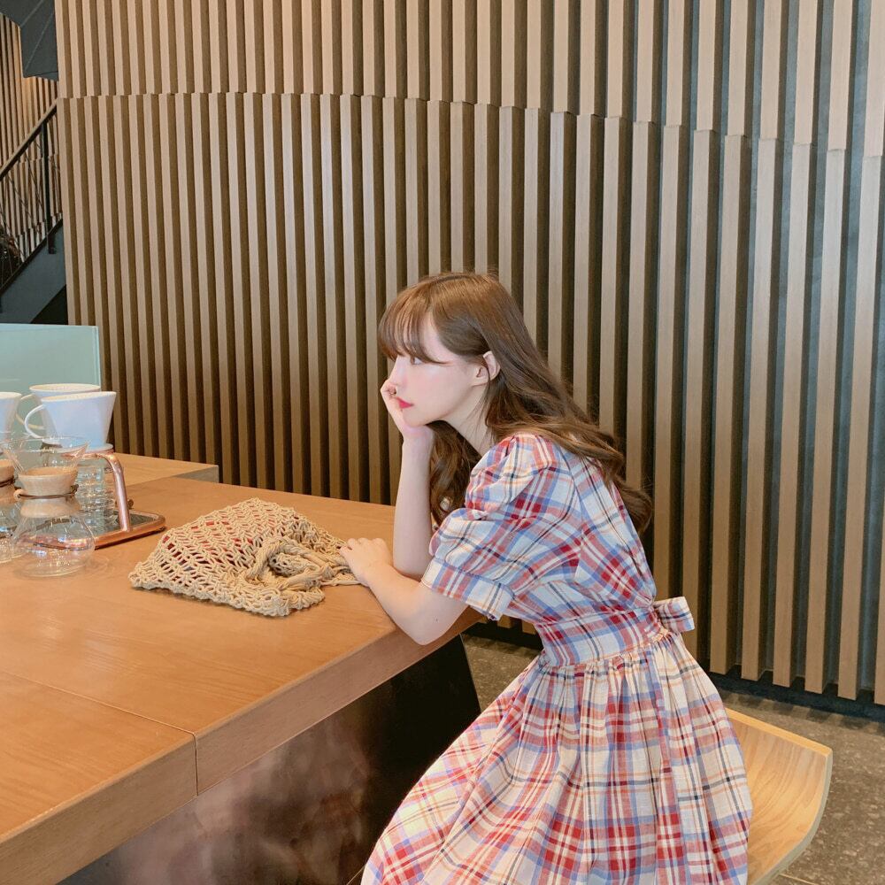 ボリューム感のあるパフスリーブに淡いカラーがかわいい!夏のチェックワンピース♪