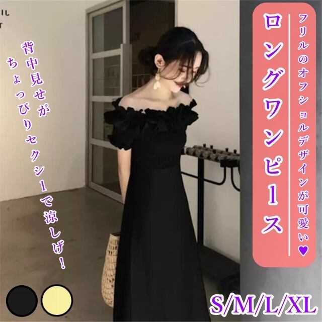フリルのオフショルデザインが可愛いロングワンピース♪