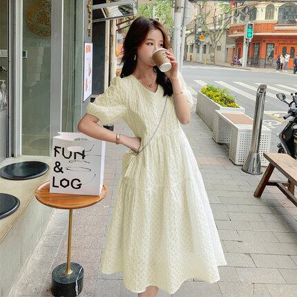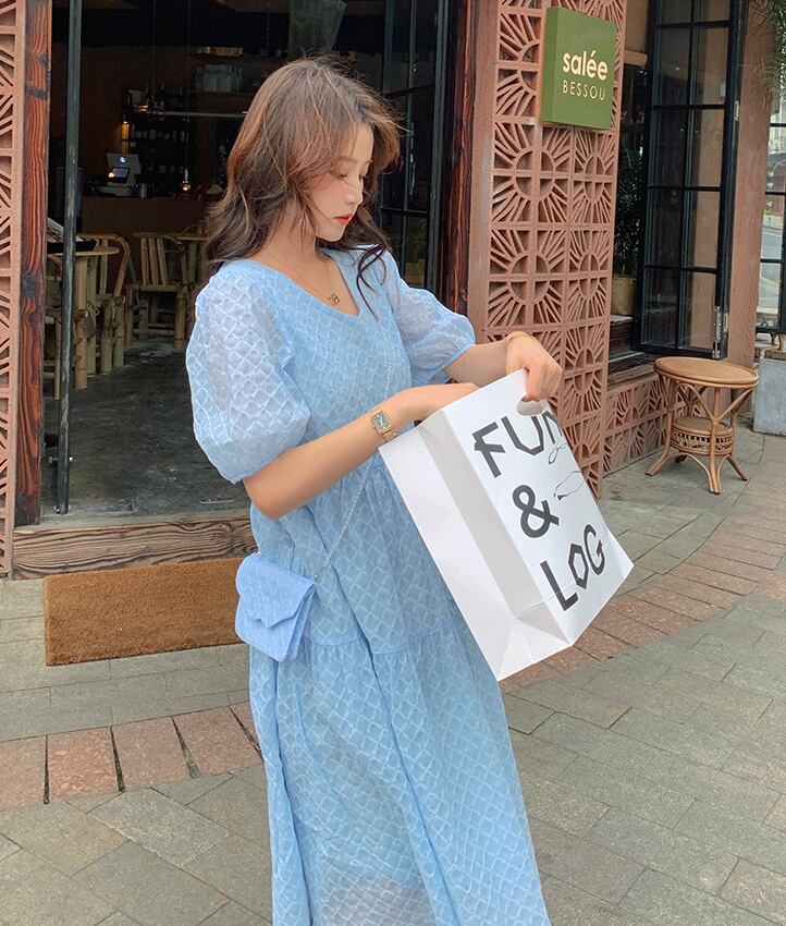 チェーンバッグワンピース ワンピース フレアワンピース 膝丈 ひざ丈 ミモレ ミモレ丈 ミディアム丈 袖あり 半袖 パフスリーブ Vネック フレア ポリエステル かわいい 大人可愛い きれいめ シンプル カジュアル 大人 おしゃれ お洒落 大人可愛い 大人女子 こなれ感 ラブリー キュート ガーリー 主役級 無地 春 夏 10代 20代 30代 レディース 学生 通学 デート お出かけ 公園デビュー 女子会 休日 着回し 普段使い 重ね着 韓国 韓国系 サイズ S M L XL 色展開 ホ 6432