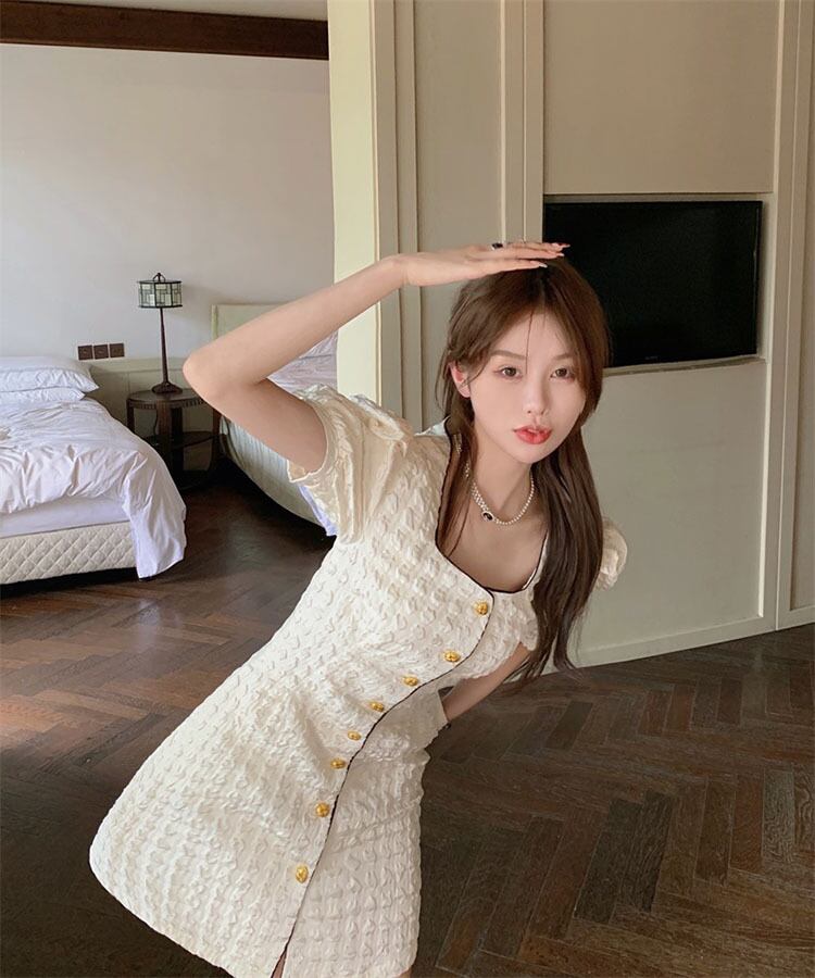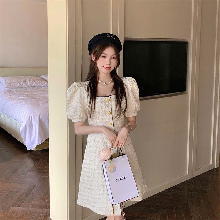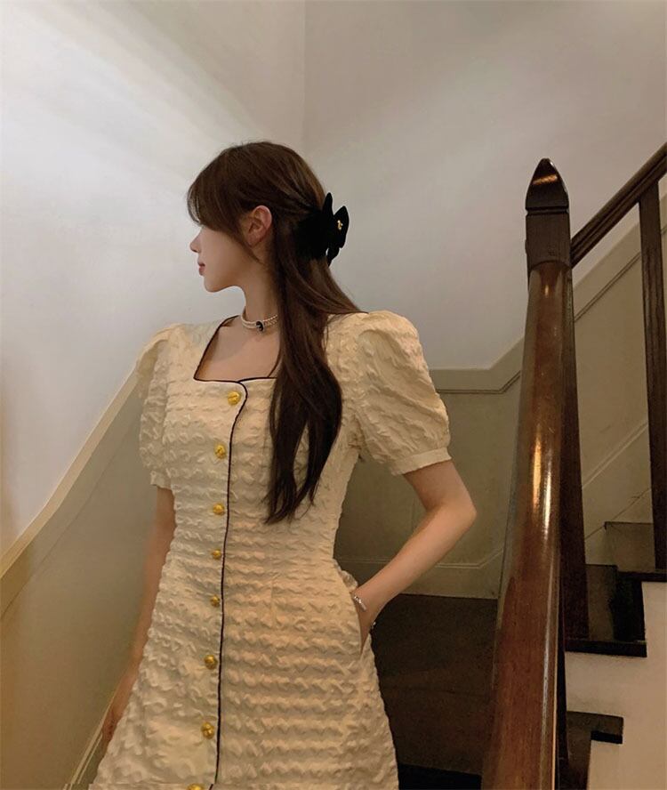フロントボタンワンピース ワンピース フレアワンピース 膝丈 ひざ丈 袖あり 半袖 パフスリーブ スクエアネック ハイウエスト かわいい 大人可愛い きれいめ シンプル 大人 上品 おしゃれ お洒落 レトロ 大人可愛い 大人女子 こなれ感 ラブリー キュート ガーリー 主役級 無地 春 夏 10代 20代 30代 レディース 学生 通学 デート お出かけ 公園デビュー 女子会 休日 着回し 普段使い 韓国 韓国系 モテ サイズ S M 色展開 6439