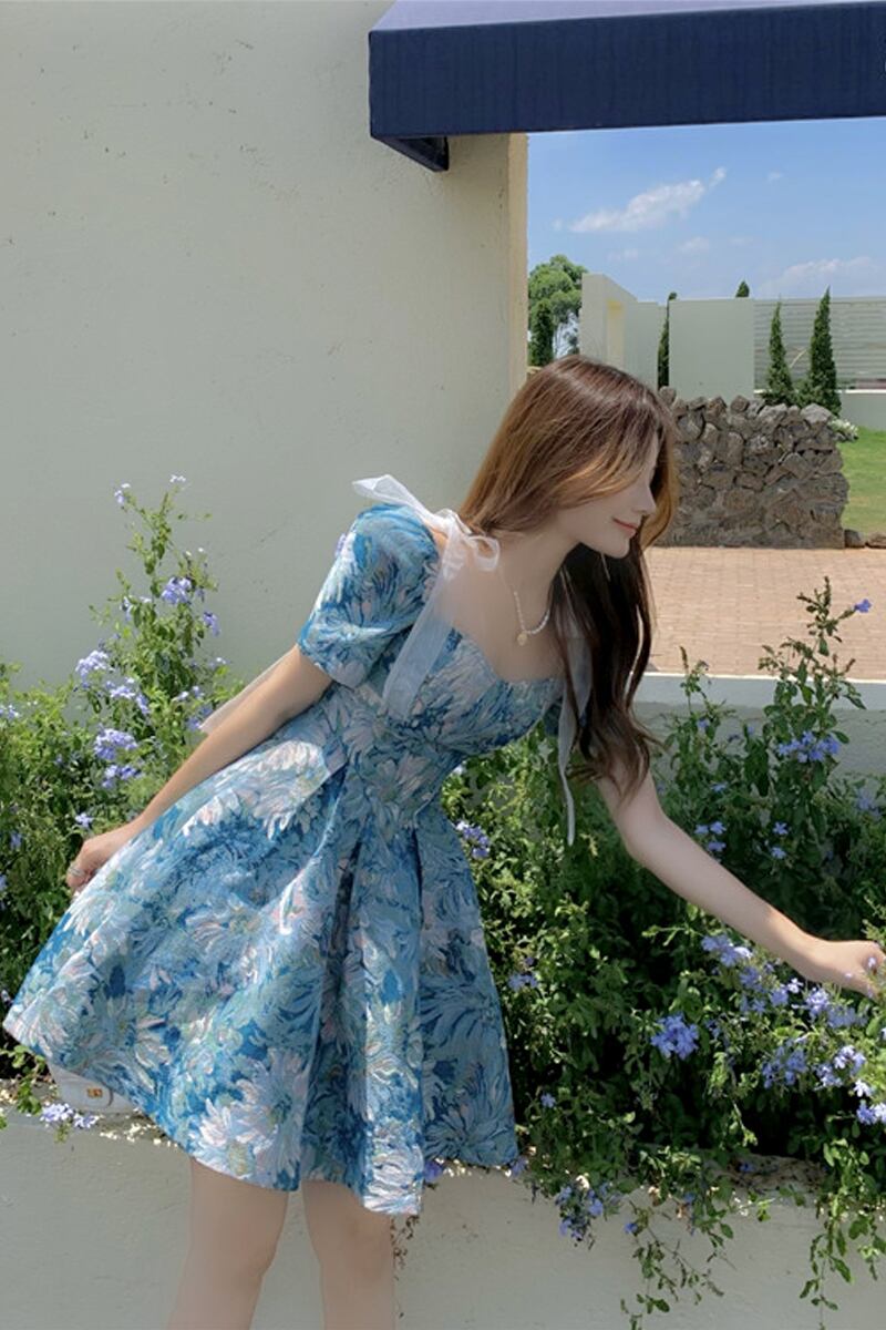 花柄チュールリボンワンピース ワンピース フレアワンピース ショート ショート丈 膝上 袖あり 半袖 パフスリーブ スクエアネック フレア Aライン リボン ハイウエスト 透け感 かわいい 大人可愛い きれいめ シンプル 大人 上品 おしゃれ お洒落 レトロ 大人可愛い 大人女子 こなれ感 ラブリー キュート ガーリー 主役級 柄 花柄 フラワー 春 夏 10代 20代 30代 レディース 学生 通学 デート お出かけ 公園デビュー 女子会 休日 着回し 普段使い 韓国 韓国系 モテ 6444