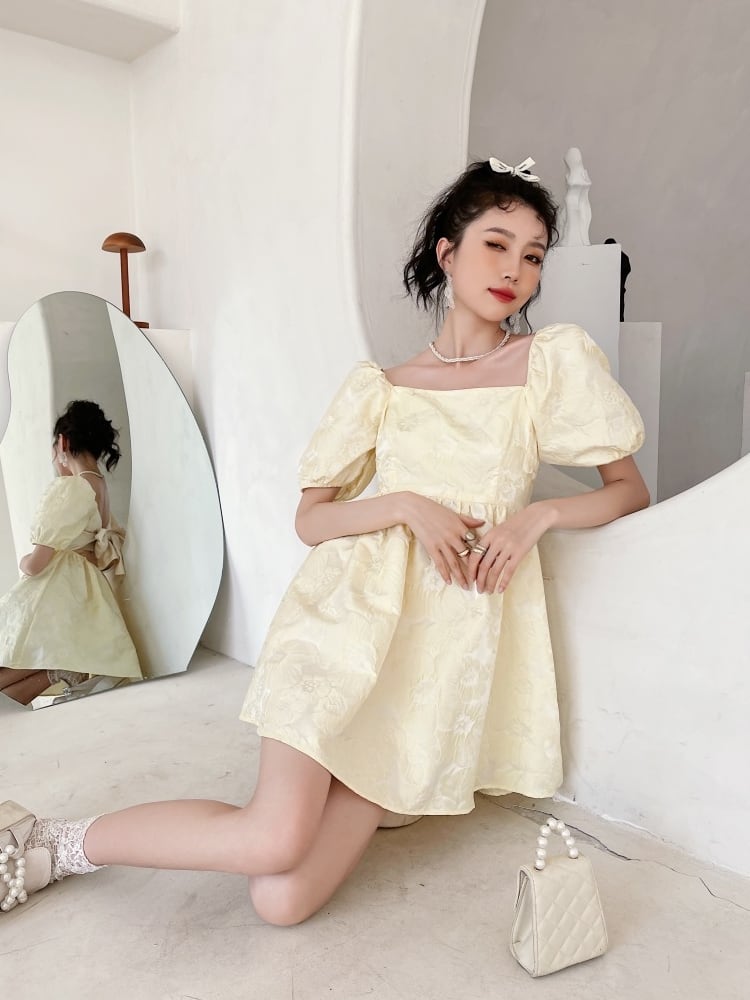 バックリボンワンピース ワンピース フレアワンピース ワンピドレス ミニ ミニ丈 ショート ショート丈 袖あり 半袖 パフスリーブ スクエアネック フレア Aライン リボン バックリボン かわいい 大人可愛い きれいめ シンプル 大人 上品 おしゃれ お洒落 大人可愛い 大人女子 こなれ感 ラブリー キュート ガーリー 主役級 無地 春 夏 10代 20代 30代 レディース 学生 通学 デート お出かけ 公園デビュー 女子会 休日 着回し 普段使い 韓国 韓国系 サイズ S M L 色展開 6448