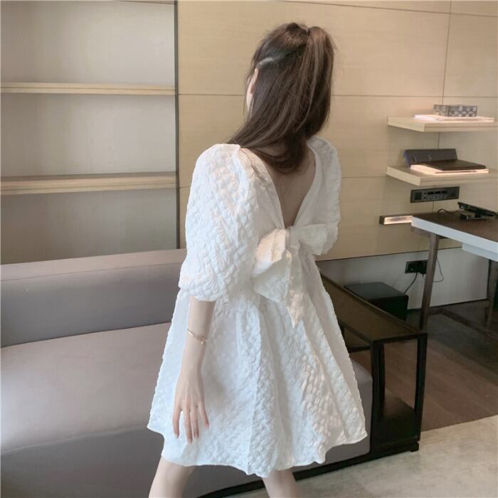 バックリボンワンピース ワンピース フレアワンピース ミニ ミニ丈 ショート ショート丈 袖あり 半袖 パフスリーブ スクエアネック フレア Aライン リボン かわいい 大人可愛い きれいめ シンプル 大人 上品 おしゃれ お洒落 大人可愛い 大人女子 こなれ感 ラブリー キュート ガーリー 主役級 無地 春 夏 10代 20代 30代 レディース 学生 通学 デート お出かけ 公園デビュー 女子会 休日 着回し 普段使い 韓国 韓国系 サイズ M L XL 2XL 色展開 白 ホワ 6452