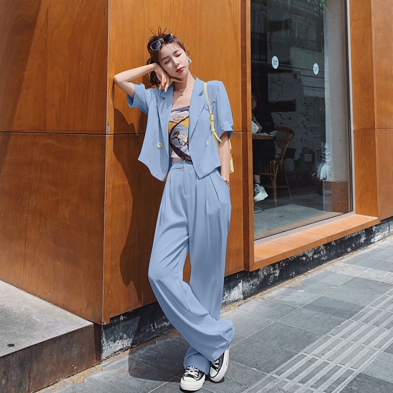#かわいい #シンプル #おしゃれ #半袖ジャケット #タックパンツ