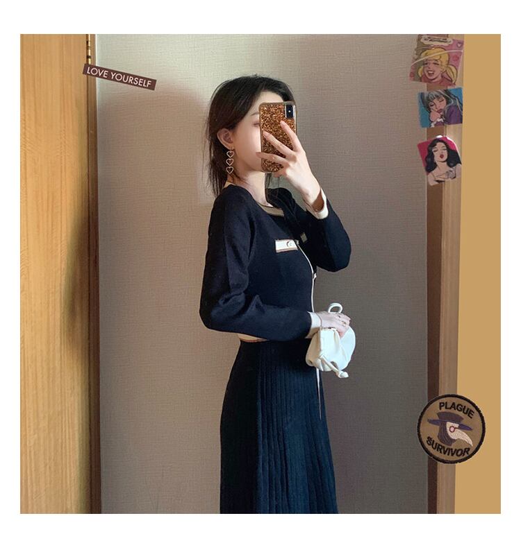 #長袖 #かわいい #シンプル #おしゃれ #プリーツニットワンピース