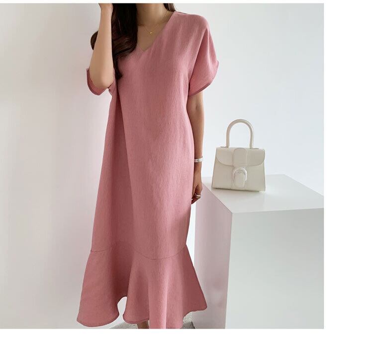 Ⅴネック半袖ワンピース ワンピース ロング ロング丈 袖あり 半袖 Vネック マーメイド 切り替えデザイン 綿 麻 リネン かわいい 大人可愛い きれいめ シンプル カジュアル 大人 おしゃれ お洒落 大人可愛い 大人女子 こなれ感 ラブリー キュート ガーリー 主役級 存在感 無地 春 夏 10代 20代 30代 レディース 学生 通学 デート お出かけ 公園デビュー 女子会 休日 着回し 普段使い 重ね着 サイズ S M L XL 色展開 ベージュ ピ 6647