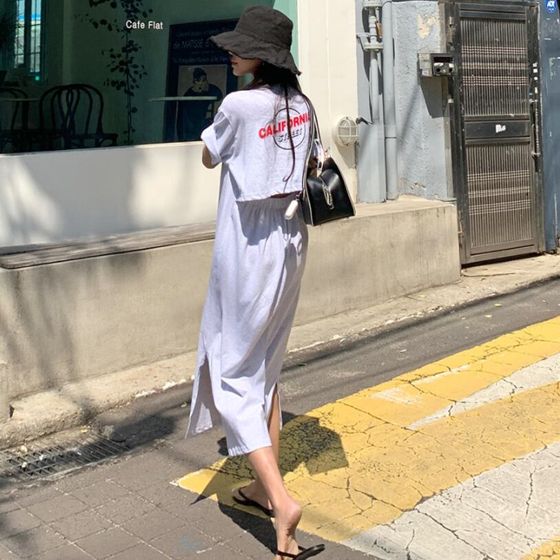ロゴプリント半袖ワンピース ワンピース 膝丈 ひざ丈 膝下 袖あり 半袖 ラウンドネック バックシャン バックコンシャス かわいい 大人可愛い シンプル カジュアル 大人 おしゃれ お洒落 大人可愛い 大人女子 こなれ感 個性的 主役級 存在感 無地 春 夏 10代 20代 30代 レディース 学生 通学 デート お出かけ 公園デビュー 休日 着回し 普段使い 重ね着 韓国 6661