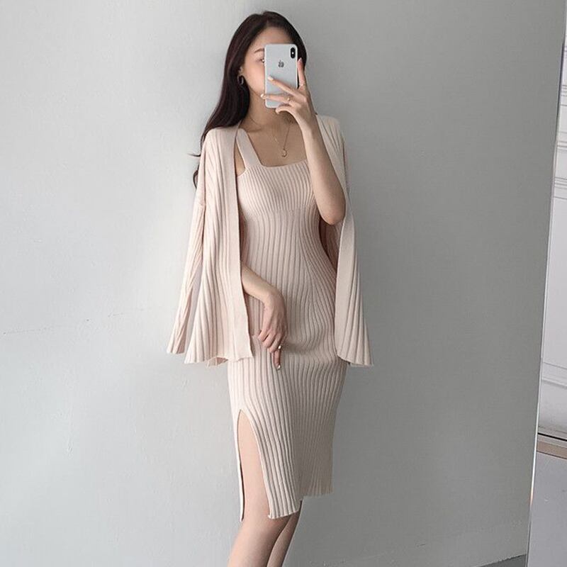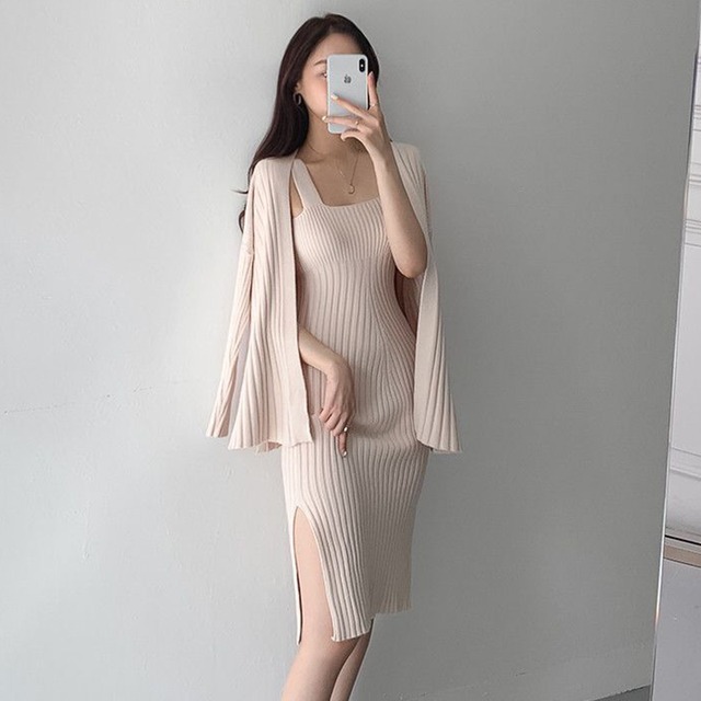 大人っぽい雰囲気のリブニットワンピース、カーディガン♪