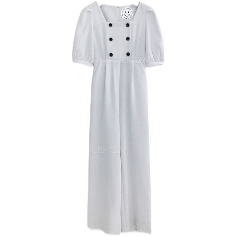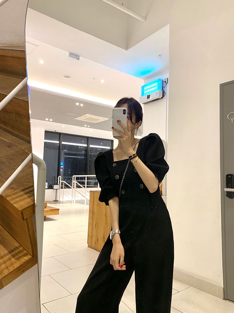 ダブルボタンオールインワン ボトムス オールインワン ロング ロング丈 袖あり 半袖 パフスリーブ スクエアネック かわいい 大人可愛い シンプル カジュアル 大人 おしゃれ お洒落 大人可愛い 大人女子 ラブリー キュート ガーリー 主役級 無地 春 夏 10代 20代 30代 レディース 学生 通学 デート お出かけ 公園デビュー 女子会 休日 着回し 普段使い 色展開 白 ホワイト 黒 ブラック 6678