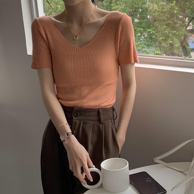 #かわいい #シンプル #おしゃれ #レディース #ⅤネックリブTシャツ