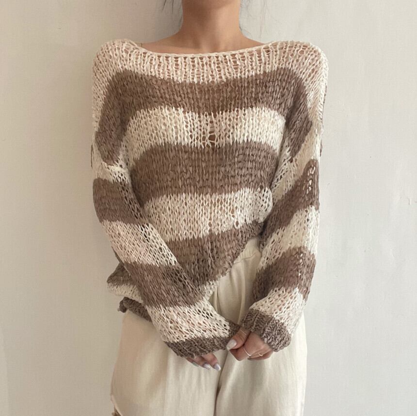 レディースニット 長袖 クルーネック ボートネック ボーダー ボリューム袖 トップス 秋 冬 透け感 シースルー レイヤードスタイル 重ね着 大人可愛い 大人女子 おしゃれ お洒落 個性的 存在感 主役級 カジュアルコーデ ガーリーコーデ ルーズ ゆったり ラフ ゆる 色違い お揃い 着回し インスタ映え 大学生 学生 通学 キャンパスコーデ おうちコーデ おうち時間 ママコーデ お出かけ 女子会 カラー カーキ ピンク ブラックサイズ 6710