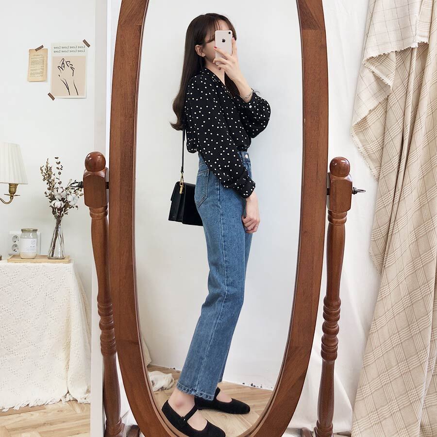 #レディースブラウス #長袖 #おしゃれ #開襟シャツ #ドット柄