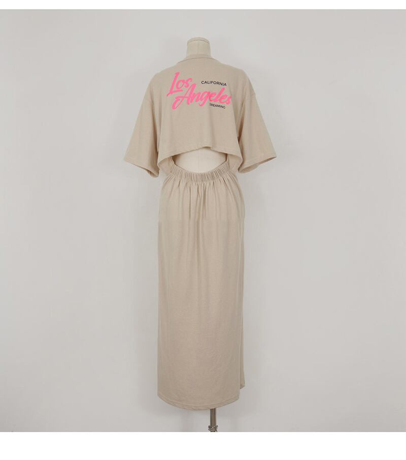 ロゴプリント半袖ワンピース ワンピース 膝丈 ひざ丈 膝下 袖あり 半袖 ラウンドネック バックシャン バックコンシャス かわいい 大人可愛い シンプル カジュアル 大人 おしゃれ お洒落 大人可愛い 大人女子 こなれ感 個性的 主役級 存在感 無地 春 夏 10代 20代 30代 レディース 学生 通学 デート お出かけ 公園デビュー 休日 着回し 普段使い 重ね着 韓国 色展開 色展開 白 ホワイト 黒 ブラ 7448