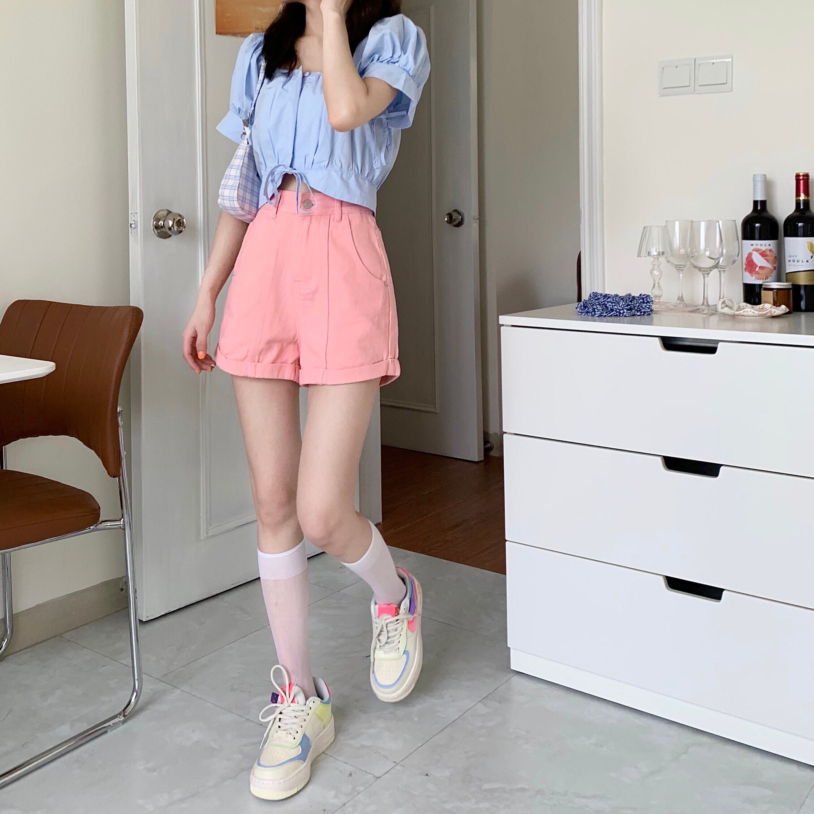 レディースショートパンツ ハイウエスト ミニ丈 ショート丈 Aライン ポケット付き 無地 ファスナー ジップアップ キュロット ホットパンツ ボトムス 春 夏 大人可愛い 大人女子 おしゃれ お洒落 カジュアルコーデ シンプルコーデ ガーリーコーデ キュート ラブリー 通学 学生 大学生 キャンパスコーデ デートコーデ お出かけ 女子会 色違い 着回し お揃い 双子コーデ 足長効果 美脚効果 カラー デニムブルー ピンク アプリコット サイズ展 7403