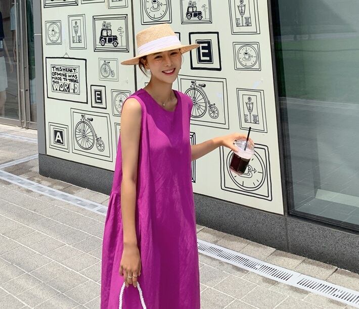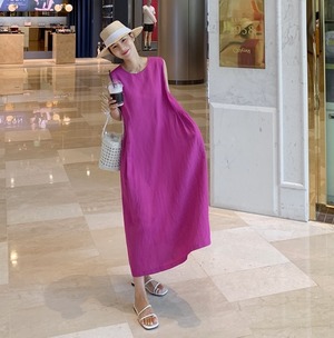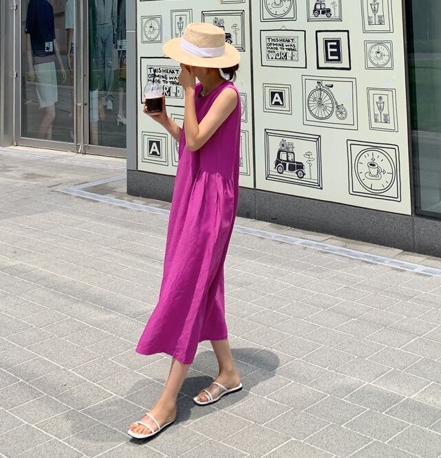 ワンピース ノースリーブ コットン 綿 リネン 麻 サマーワンピ 袖なし 薄い ラウンドネック ミモレ丈 Aライン シンプル 無地 カジュアル ラフ ルーズ ゆる ルーズウエスト ゆったり 楽ちん リラクシー ゆるかわ 大人可愛い かわいい 可愛い 大人女子 おしゃれ お洒落 通勤 通学 学生 お出かけ デート 旅行 リゾート 海 ビーチ プール バカンス 休日 普段着 普段使い レディース 10代 20代 30代 夏 S M L XL 6753