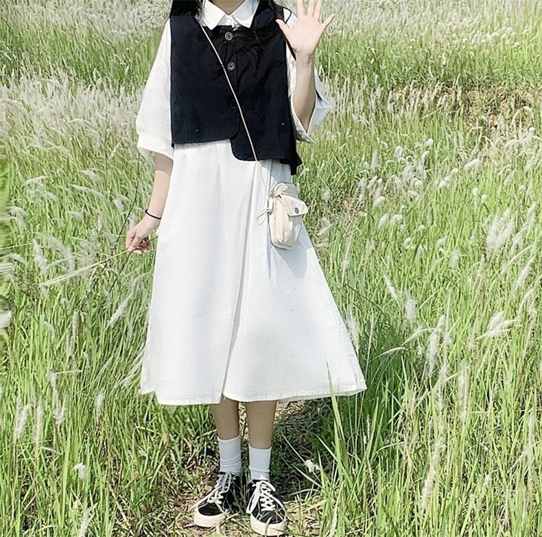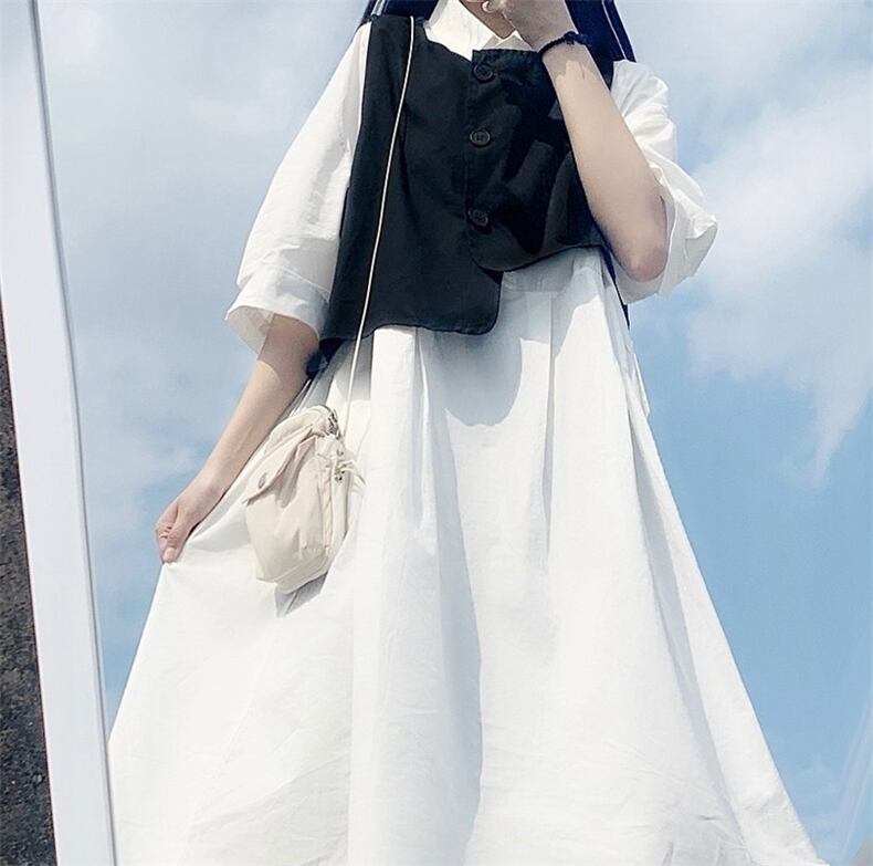 アシンメトリーデザインベスト シャツワンピース ワンピース ベスト シャツワンピース 膝丈 ひざ丈 膝下 袖あり 半袖 パフスリーブ 襟付き 前開き 綿 ポリエステル 2点セット ツーピース かわいい 大人可愛い シンプル カジュアル 大人 おしゃれ お洒落 大人可愛い 大人女子 こなれ感 ラフ ラブリー キュート ガーリー 主役級 存在感 無地 春 夏 10代 20代 30代 レディース 学生 通学 お出かけ 公園デビュー 休日 着回し 普段使い 重ね着 サイズ S M L 色展開 7528
