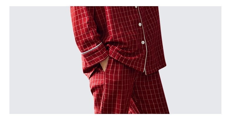 ビビッドなレッドが印象的なレディースパジャマです。
