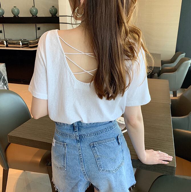 バックシャンTシャツ トップス Tシャツ 袖あり 半袖 ラウンドネック バックシャン バックコンシャス 綿 かわいい 大人可愛い きれいめ シンプル カジュアル 大人 おしゃれ お洒落 大人可愛い 大人女子 こなれ感 ラブリー キュート ガーリー 主役級 無地 春 夏 10代 20代 30代 レディース 学生 通学 デート お出かけ 女子会 休日 着回し 普段使い 韓国 韓国系 色展開 白 ホワイト 黒 ブラック 緑 グリーン オレンジ アプリコット 7567