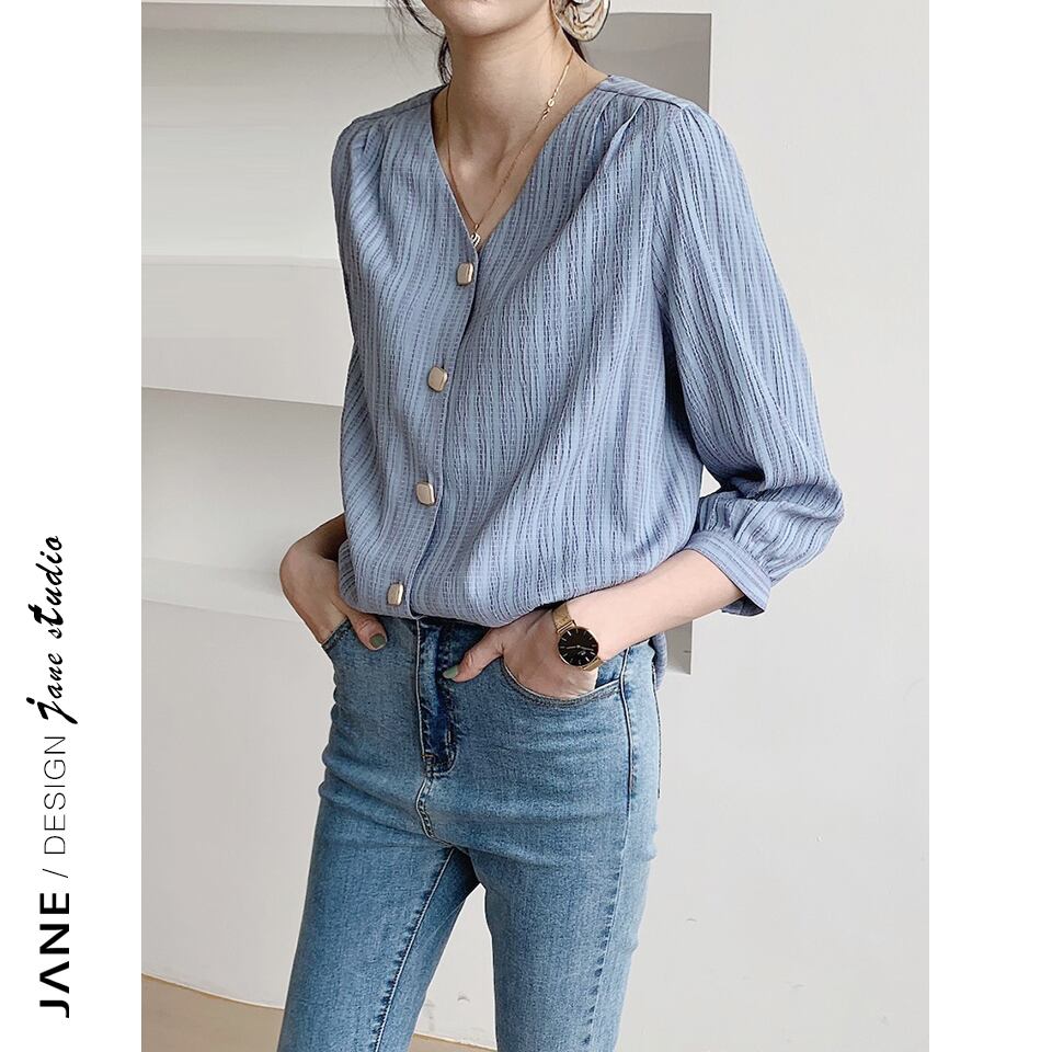Ⅴネック七分袖ブラウス トップス ブラウス 袖あり 7分袖 七分袖 Vネック 前開き かわいい 大人可愛い きれいめ シンプル カジュアル 大人 おしゃれ お洒落 大人可愛い 大人女子 こなれ感 ラブリー キュート ガーリー 個性的 クール 主役級 存在感 無地 0 春 夏 秋 10代 20代 30代 レディース OL 学生 通学 デート お出かけ 女子会 休日 着回し 普段使い 韓国 韓国系 サイズ S M L 色展 7593
