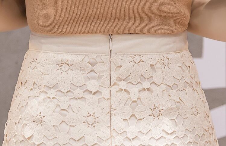 ボトムス スカート 花柄 刺繍 レース ペンシルスカート ミディ丈 膝丈 膝下 ハイウエスト 透け感 裏地あり 背面ジッパー ファスナー バックスリット スカラップ Aライン タイト スリム 細身 大人 上品 レディライク きれいめ 大人可愛い かわいい 可愛い 大人女子 おしゃれ お洒落 通勤 OL オフィス お出かけ デート 旅行 休日 普段着 普段使い 着回し レディース 20代 30代 40代 春 夏 秋 S M L XL アプリコット 7351